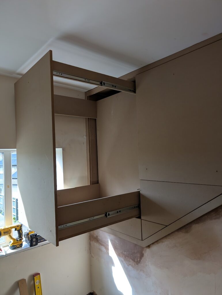A snapshot of our latest project: transforming that awkward, unused space above the stairs into a truly one-of-a-kind storage solution, accessed from the bedroom. What was once dead space is now both practical and beautifully integrated. Huge thanks to Naz and Toby for the bacon sandwiches and plenty of well-timed cups of tea.